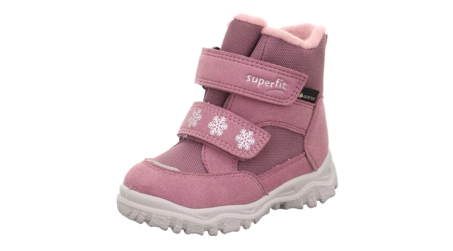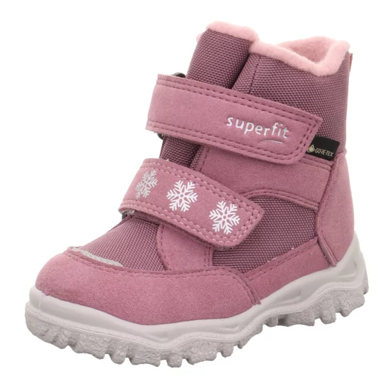 Garantáltan vízálló,lila színű, bundás hótaposó,hópehely díszítéssel a tépőzáron.